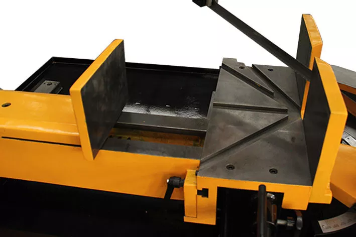 The Procut 260 MBD offers dual-way mitring up to 60 degrees. A large capacity vice with quick action allows for fast change over times between material sizes. Variable blade speed assists when cutting different grades of material or section and solids. A central panel on the saw bow gives easy access to all machine controls.